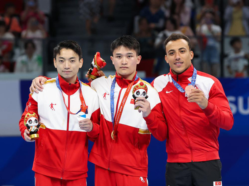 東京奧運(yùn)會(huì)銀牌得主、中國臺(tái)北選手李智凱收獲鞍馬金牌,實(shí)現(xiàn)大運(yùn)會(huì)鞍馬“三連冠”?!斑@是我的最后一屆世界大學(xué)生運(yùn)動(dòng)會(huì),能夠在這次把自己的難度分升到6.5分,對(duì)我來說是一個(gè)突破與成長(zhǎng),很開心能完成這樣的目標(biāo)。”他說。