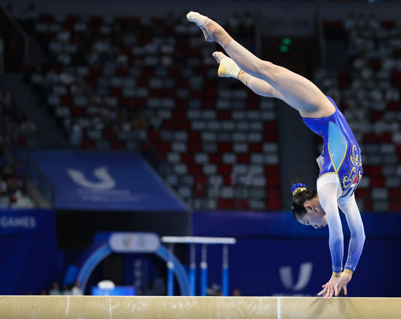新華社成都8月5日電(記者譚暢、朱青)成都大運(yùn)會(huì)體操項(xiàng)目5日結(jié)束,在最后一個(gè)比賽日的單項(xiàng)對(duì)決中,中國隊(duì)選手奪得吊環(huán)、雙杠、高低杠、平衡木、女子自由體操金牌。其中,歐鈺珊拿到平衡木和女子自由體操冠軍,本屆賽事獨(dú)攬4枚金牌。5天賽程,中國隊(duì)共獲9枚金牌、5枚銀牌、1枚銅牌。