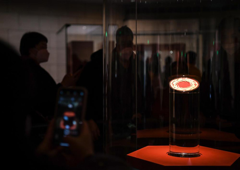 觀眾在位于四川成都的金沙遺址博物館參觀太陽(yáng)神鳥(niǎo)金飾。新華社記者 王曦 攝