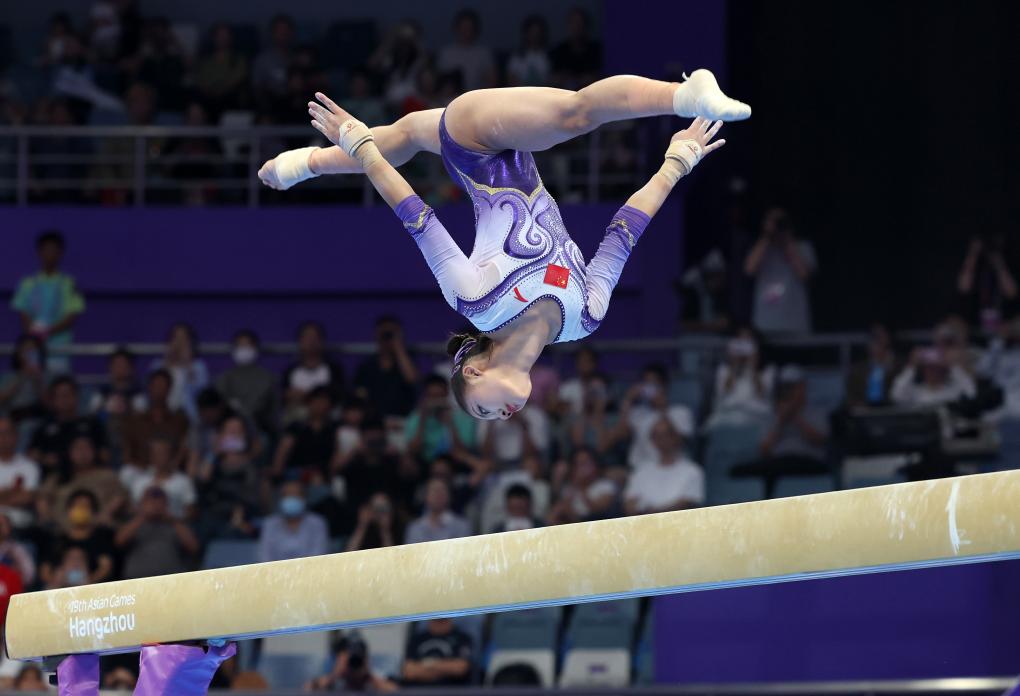 體操賽場也有中國小將橫空出世。17歲的左彤奪得女子個人全能冠軍。在隊友章瑾出現(xiàn)重大失誤,早早退出冠軍爭奪的情況下,左彤頂住壓力,以53.565分力壓日本選手岡村真奪冠。從2022年9月入選國家隊世錦賽集訓(xùn)大名單,到今年6月隨隊獲得亞錦賽團(tuán)體金牌,再到亞運(yùn)會收獲團(tuán)體和個人全能兩金,左彤正在打開一個充滿希望的未來。