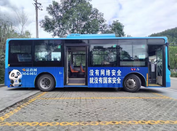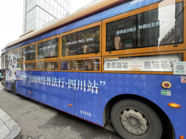 據(jù)介紹,未來一個月時間里,成都市民和來蓉游客都能在春熙路商圈的“網(wǎng)紅”地標(biāo)“熊貓爬墻”下,看到網(wǎng)絡(luò)普法主題公交。該主題公交在成都著名的“熊貓觀光線”上運行,并往返于成都地標(biāo)春熙路以及熱門景點熊貓基地,途經(jīng)寬窄巷子、文殊院等人氣打卡地,公交車化身普法“宣傳員”,讓網(wǎng)絡(luò)普法宣傳融入城市交通、深入大街小巷、進(jìn)入百姓心中。