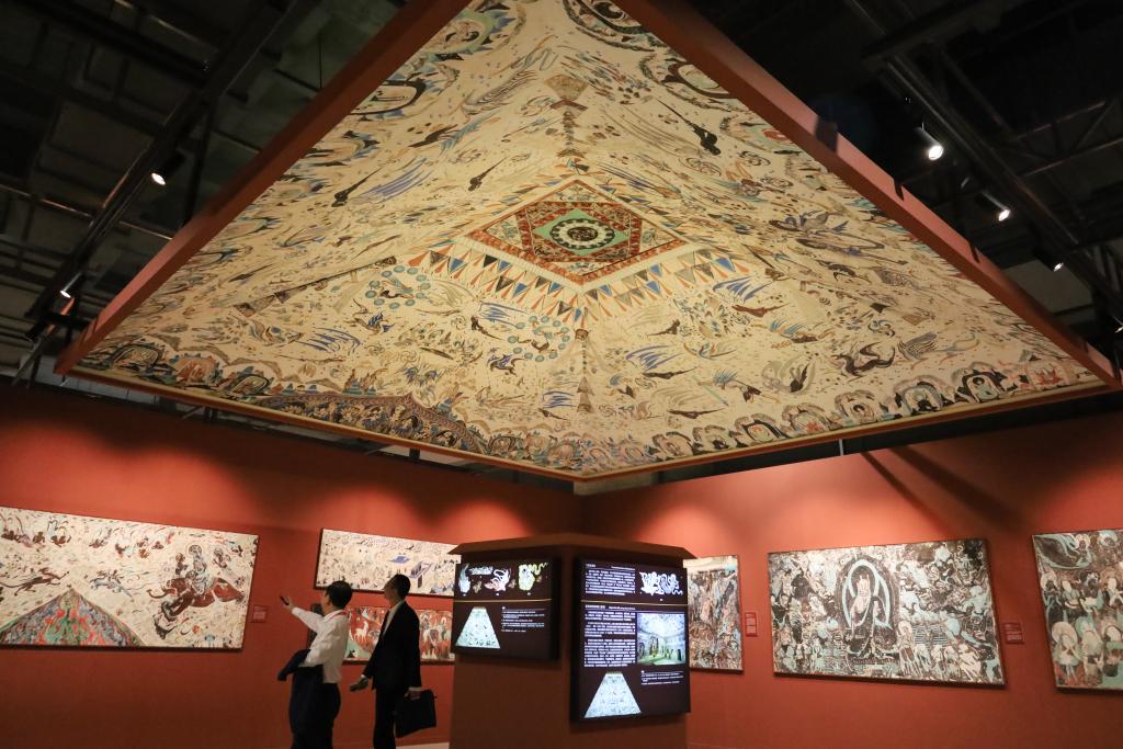 9月6日,與會嘉賓在第六屆絲綢之路(敦煌)國際文化博覽會上參觀敦煌文化主題展。新華社記者 馬希平 攝