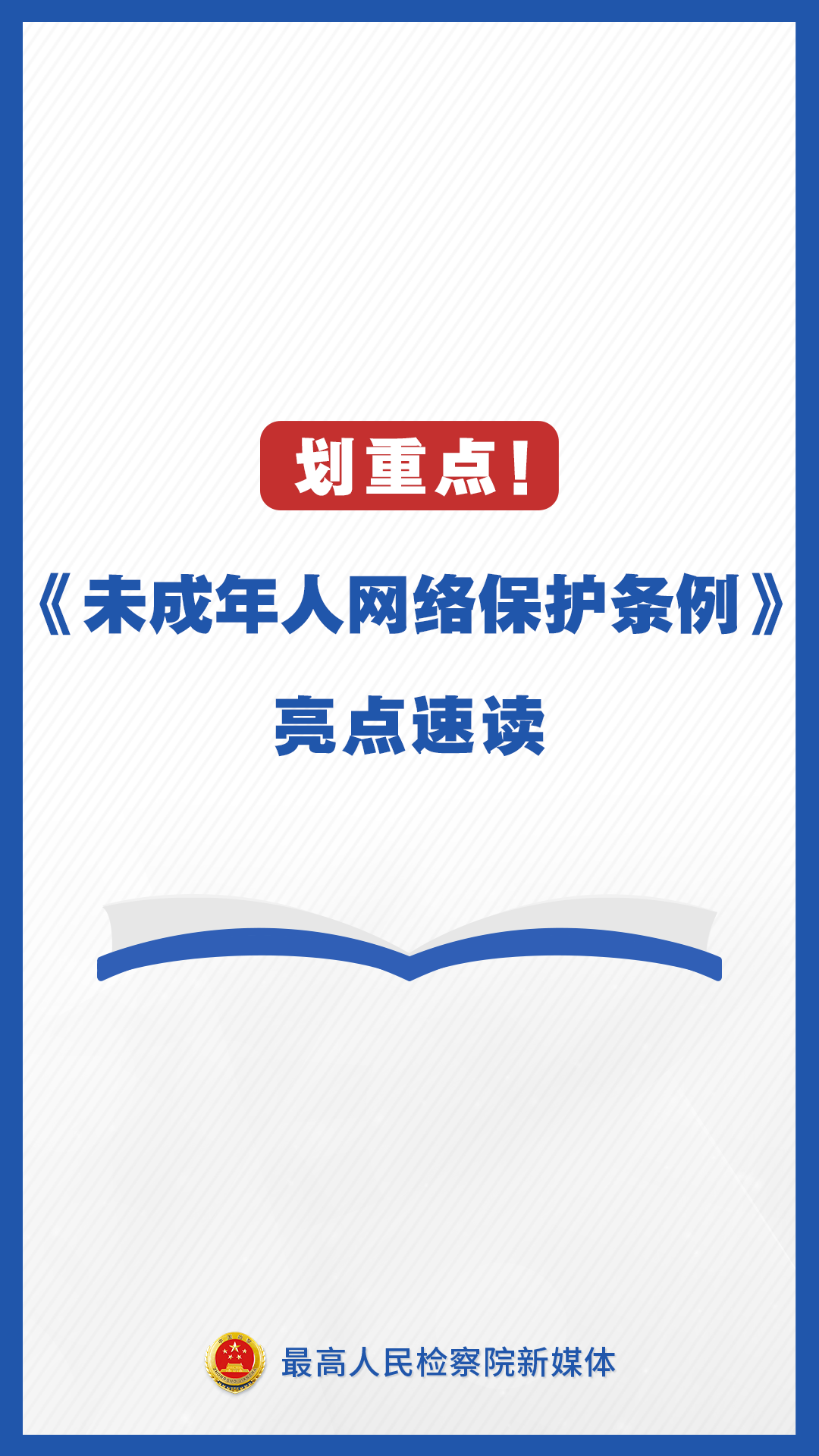 《未成年人網(wǎng)絡保護條例》來了!檢察君為你劃重點,速讀未成年人網(wǎng)絡保護新舉措!不得通過網(wǎng)絡對未成年人實施侮辱、誹謗等網(wǎng)絡欺凌行為;不得為未成年人提供游戲賬號租售服務;建立網(wǎng)絡直播發(fā)布者真實身份信息動態(tài)核驗機制……速速轉發(fā)擴散!