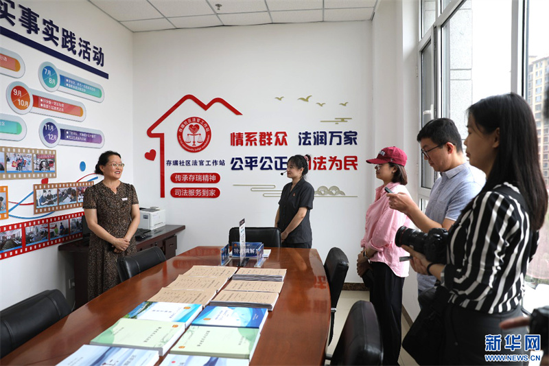 隆化縣人民法院存瑞社區(qū)法官工作站調(diào)解員林瑩(左一)向新時(shí)代“楓橋經(jīng)驗(yàn)”網(wǎng)絡(luò)主題宣傳活動(dòng)河北行采訪團(tuán)成員介紹調(diào)解情況。新華網(wǎng) 高麗攝