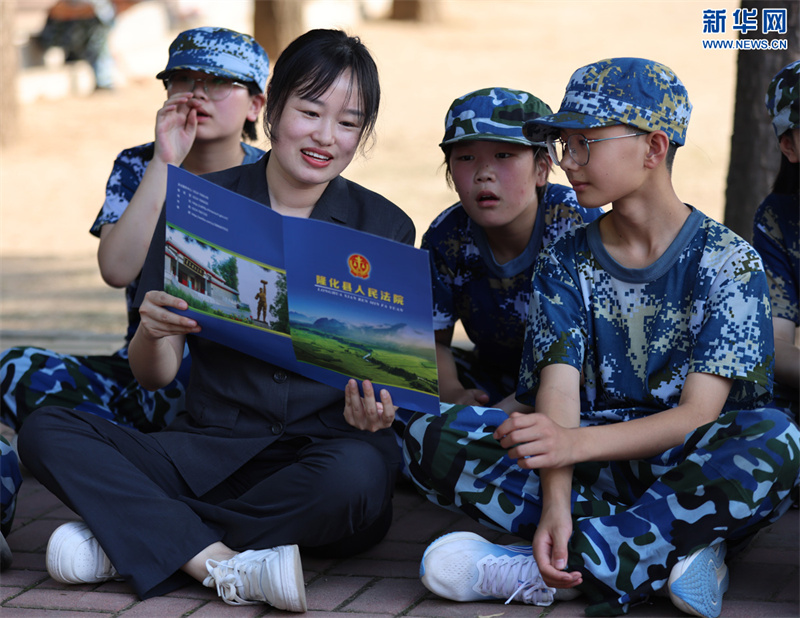 隆化縣人民法院城區(qū)人民法庭法官黃玲玲(左二)為學(xué)生講解法律知識(shí)。新華網(wǎng)發(fā)