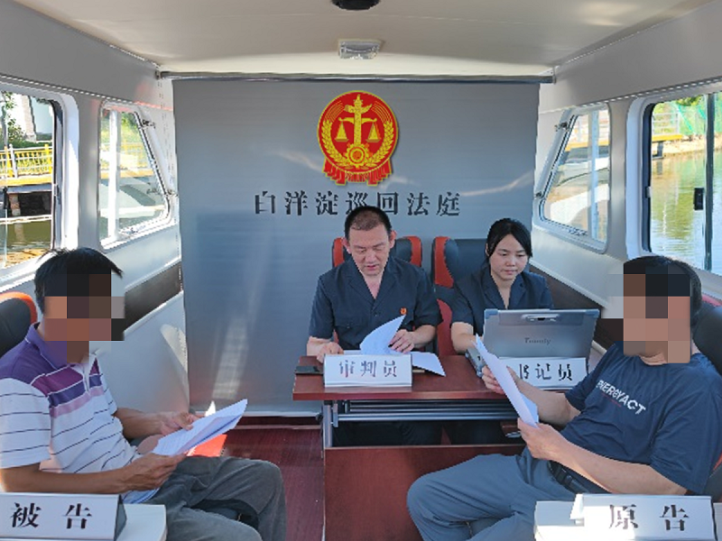 “水區(qū)群眾、游客出行、游覽基本靠船只往來,遇有糾紛到法院訴訟很是不便,水區(qū)群眾立一件案件、開一次庭或者拿一份調(diào)解書都需要乘船到縣城再乘車到法院,來回一次可能都需要一天的時間?!卑残驴h人民法院白洋淀人民法庭庭長張林杰說。2016年,白洋淀人民法庭應運而生。