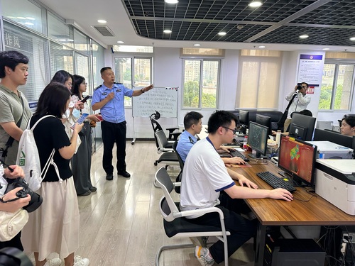 涪陵區(qū)公安局圖偵支隊支隊長徐浩向采訪團介紹數(shù)字化警務(wù)改革工作。人民政協(xié)網(wǎng)記者王慧文 攝