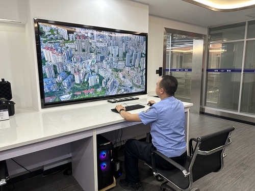 涪陵區(qū)公安局警航飛控中心開展全區(qū)三維圖像建模,助力推進警用地理基礎(chǔ)信息三維影像化。人民政協(xié)網(wǎng)記者王慧文 攝
