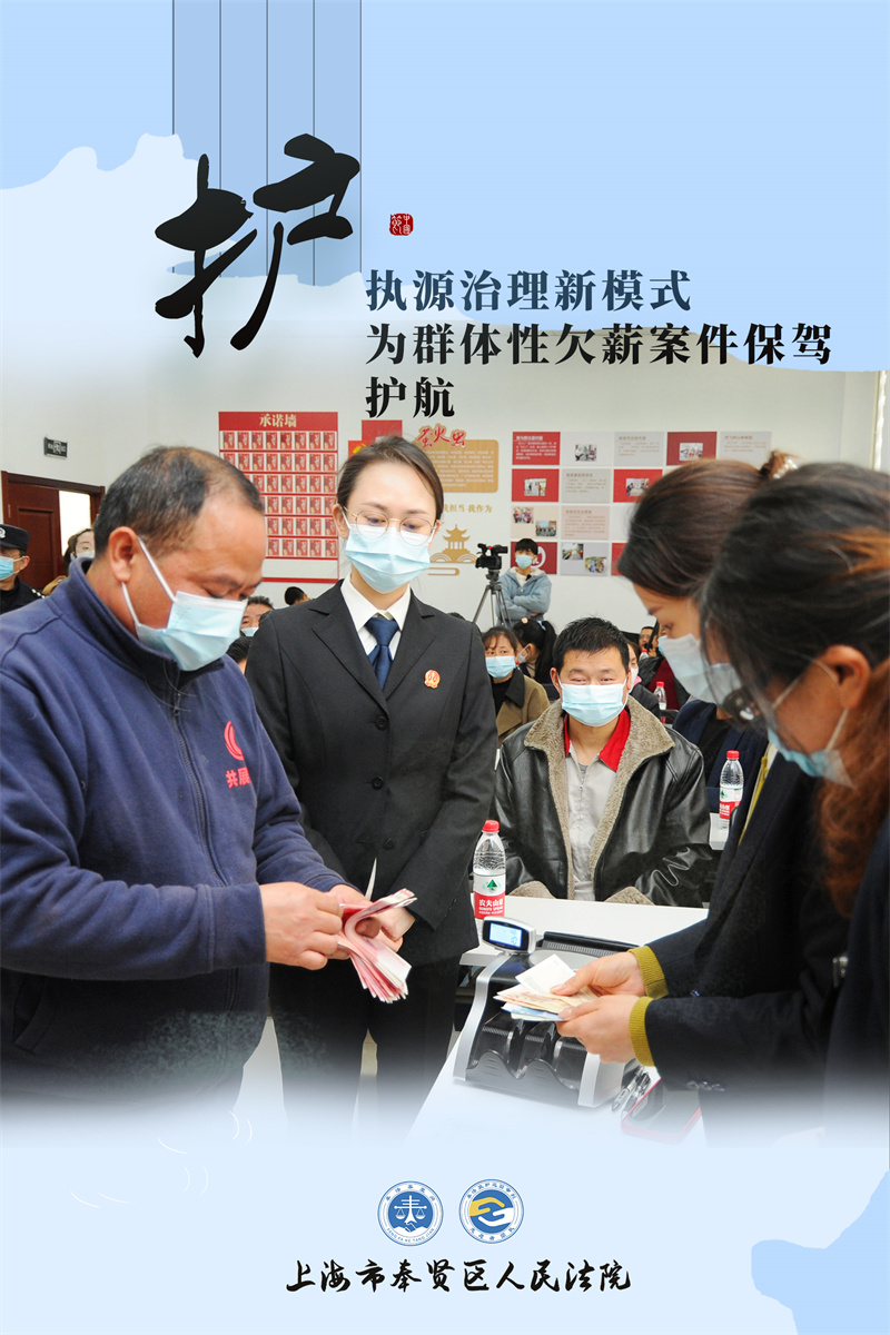 在“客堂間里護(hù)民生——奉賢法院工資發(fā)放活動(dòng)”上,工人老徐終于拿到了自己半年多的工資。上海奉賢法院緊緊依靠地方黨委、緊緊依靠屬地政府、緊緊依靠當(dāng)事人理解與支持,探索形成了“黨委領(lǐng)導(dǎo)、多方支持、分工協(xié)作、形成合力”的執(zhí)源治理新模式,使得這批涉130余名工人、總金額達(dá)510余萬(wàn)元的群體性欠薪糾紛得以妥善解決。