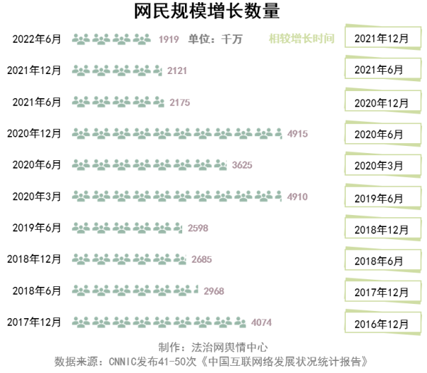 第50次《報告》顯示,2022年6月相較于2021年12月新增網(wǎng)民1919萬人。