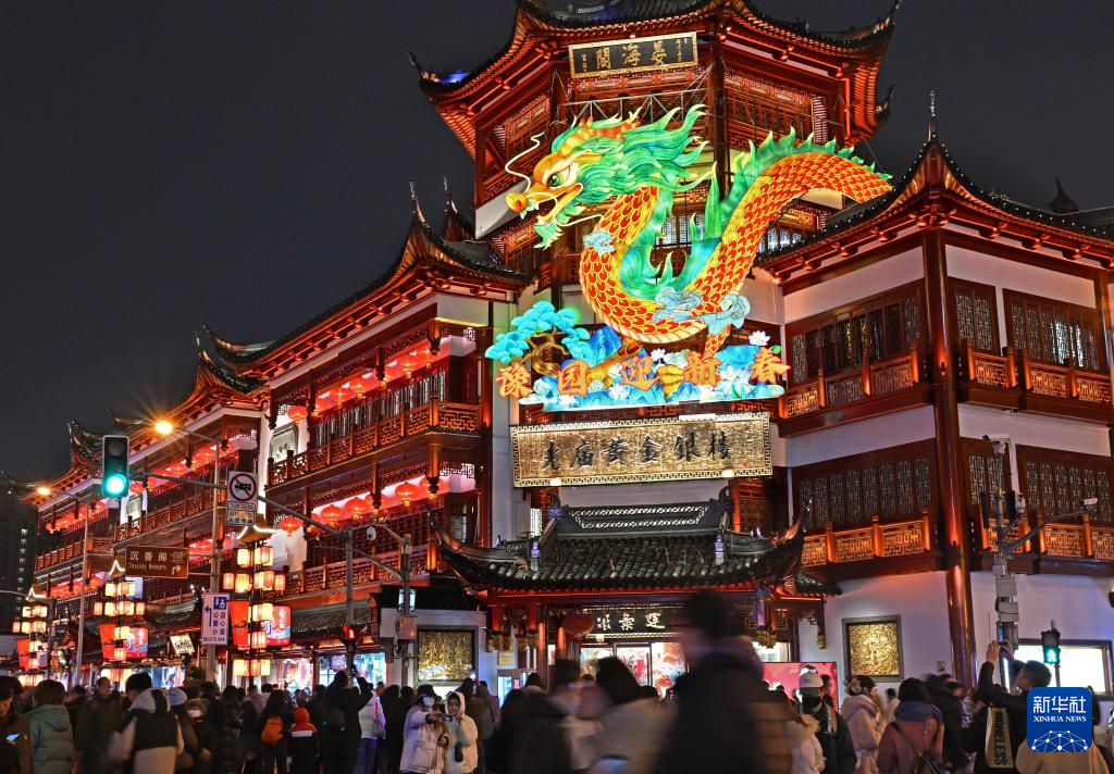 當(dāng)日,2024上海豫園民俗藝術(shù)燈會(huì)正式亮燈。今年豫園燈會(huì)續(xù)寫“山海奇豫記”,以“海經(jīng)篇”為主題,生肖龍燈、海底世界、魚群起舞、奇幻仙境等場景讓游客在燈火絢爛的國風(fēng)幻境中喜迎龍年新春。