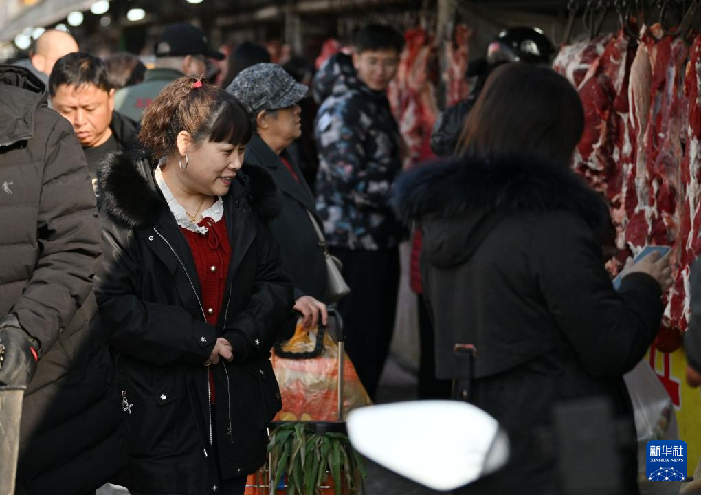 1月28日,顧客在韓家墅海吉星農(nóng)產(chǎn)品批發(fā)市場選購肉類。