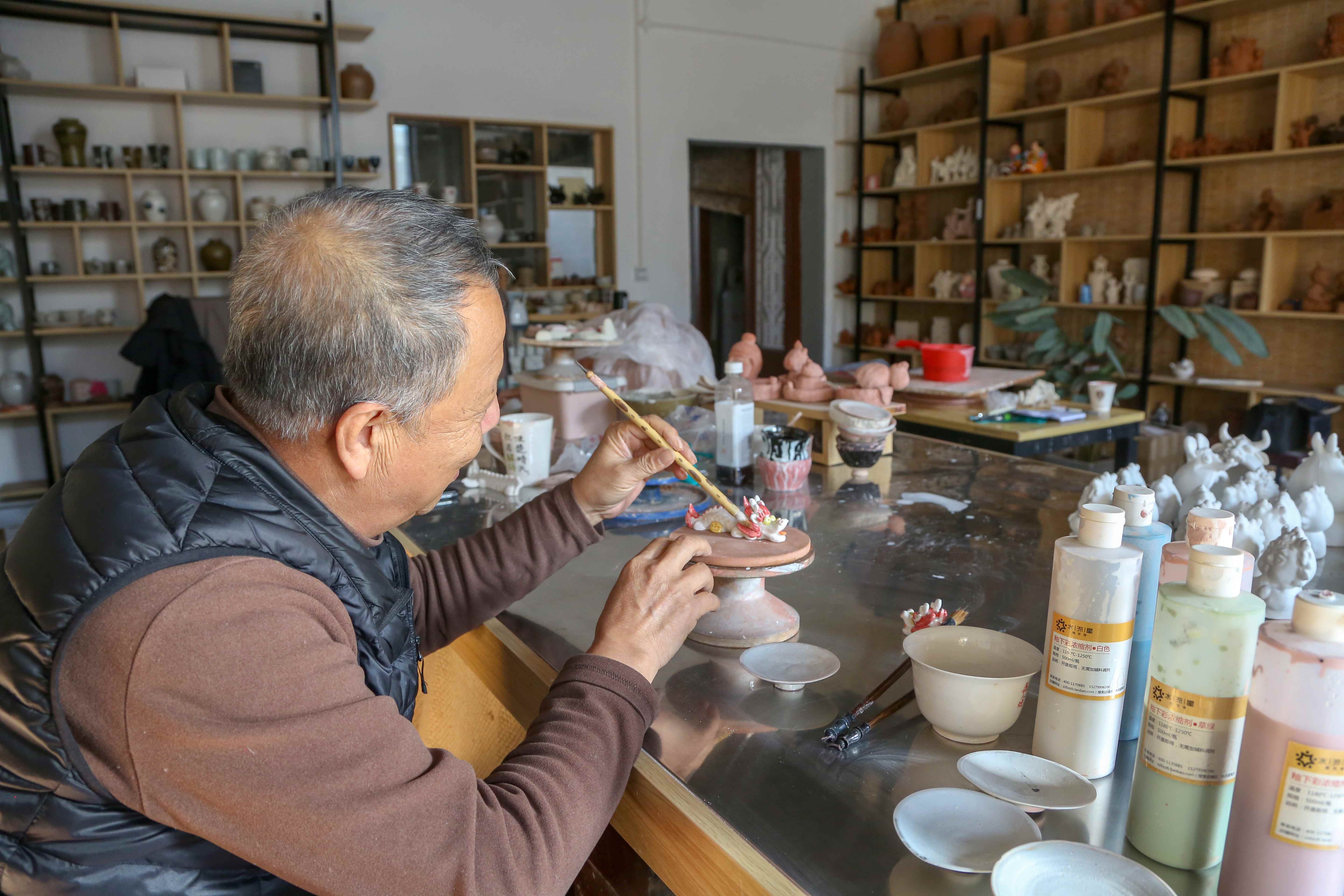 一抔泥土、一把刻刀,經(jīng)巧手捏制、刻畫、修整、彩繪、燒制等多道工序后,一個(gè)個(gè)活靈活現(xiàn)、寓意吉祥的泥塑作品便制作完成了。