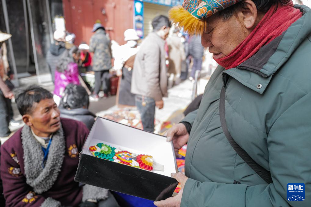 2月7日,在拉薩八廓商城,顧客在選購酥油花。