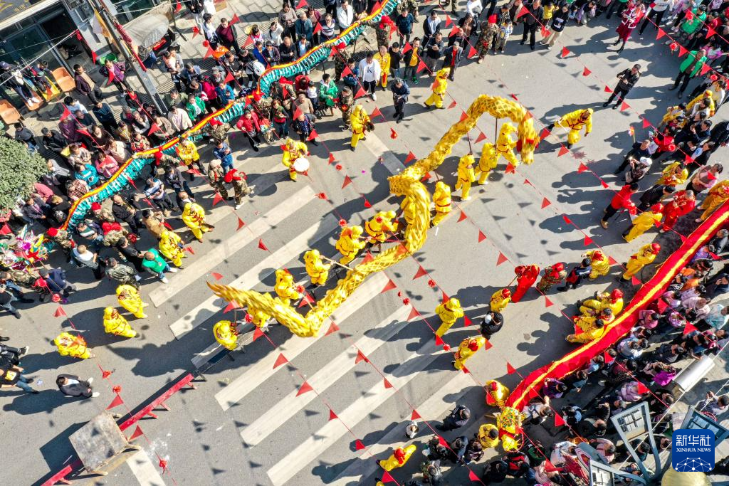 元宵佳節(jié)臨近,人們進(jìn)行傳統(tǒng)舞龍表演,熱熱鬧鬧迎元宵。