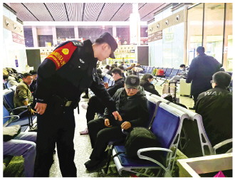 “南站分為到達層、站臺區(qū)、候車區(qū)三大區(qū)域,我們夜間安排6名民警、4名輔警在崗,分區(qū)開展巡邏防控,維護站車秩序。同時,報警臺就設(shè)在候車室,安排人員24小時值守。”馬天宇一邊巡邏,一邊向《法治日報》記者介紹說,夜間旅客容易疲憊,往往會放松警惕。對此,該所加大步巡加車巡頻次,不間斷開展巡查,讓旅客隨時見警,報警求助更方便。