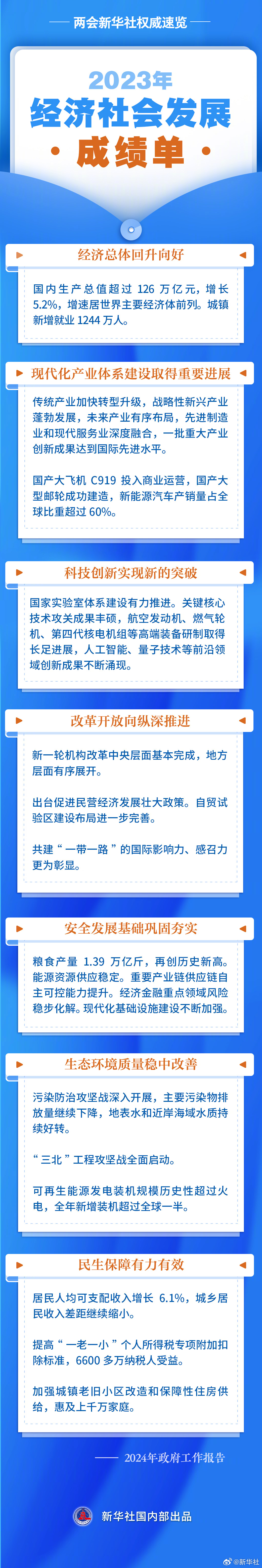 兩會(huì)新華社權(quán)威速覽丨2023年經(jīng)濟(jì)社會(huì)發(fā)展成績(jī)單