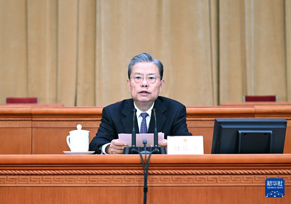 趙樂際指出,十四屆全國人大二次會議的指導(dǎo)思想是:以習(xí)近平新時代中國特色社會主義思想為指導(dǎo),全面貫徹落實(shí)黨的二十大和二十屆二中全會精神,深刻領(lǐng)悟“兩個確立”的決定性意義,增強(qiáng)“四個意識”、堅(jiān)定“四個自信”、做到“兩個維護(hù)”,堅(jiān)持黨的領(lǐng)導(dǎo)、人民當(dāng)家作主、依法治國有機(jī)統(tǒng)一,發(fā)展全過程人民民主,堅(jiān)持好、完善好、運(yùn)行好人民代表大會制度,緊緊圍繞黨和國家工作大局,認(rèn)真履行憲法和法律賦予的職責(zé),圓滿完成大會各項(xiàng)任務(wù),開成一次高舉旗幟、真抓實(shí)干、團(tuán)結(jié)奮進(jìn)的大會,動員全國各族人民更加緊密地團(tuán)結(jié)在以習(xí)近平同志為核心的黨中央周圍,堅(jiān)定信心、同心同德,埋頭苦干、奮勇前進(jìn),為全面建設(shè)社會主義現(xiàn)代化國家、全面推進(jìn)中華民族偉大復(fù)興而團(tuán)結(jié)奮斗。