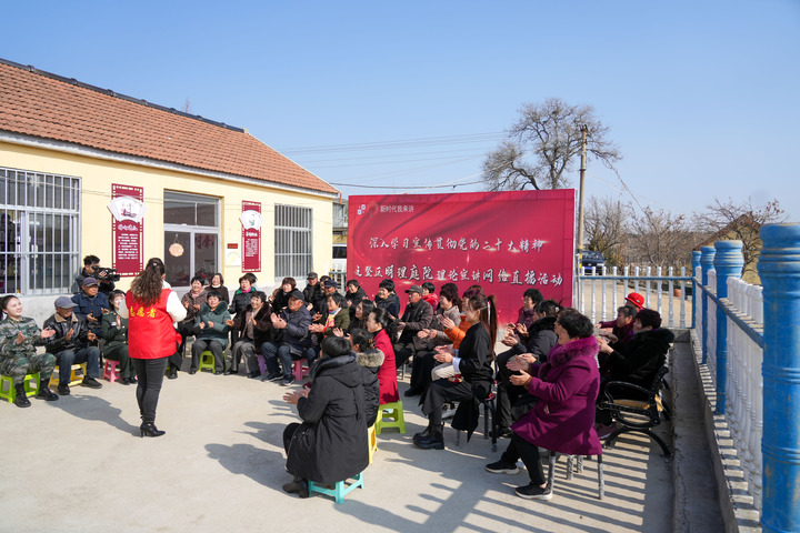 2023年2月16日,山東威海文登營鎮(zhèn)大店村村民在村中心大院內(nèi)參加理論宣講活動。新華社記者 朱崢 攝
