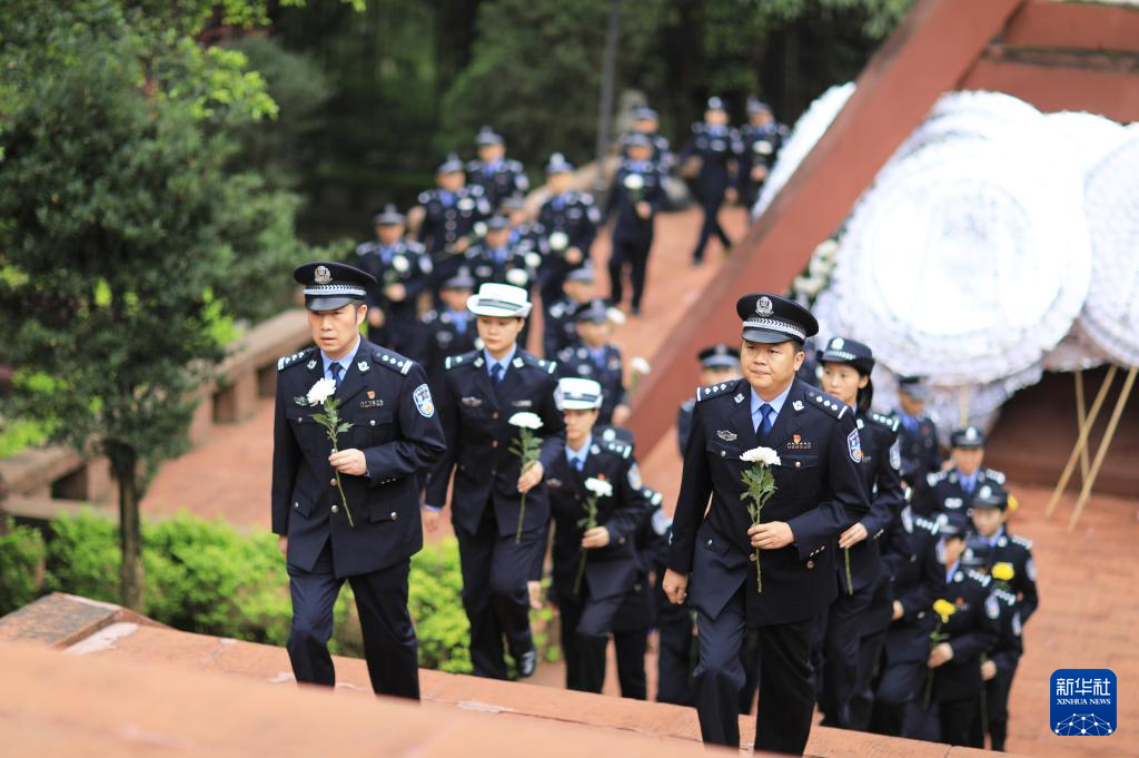 4月2日,在貴州省赤水市紅軍烈士陵園,民警列隊(duì)向紅軍烈士墓獻(xiàn)花。