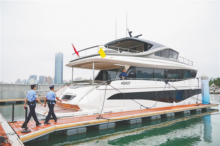 4月9日,在??诤jP(guān)等多部門(mén)聯(lián)動(dòng)監(jiān)管下,中國(guó)香港籍游艇“145037”順利駛?cè)牒D虾S?,穩(wěn)穩(wěn)靠泊在海口市國(guó)家帆船基地公共碼頭。