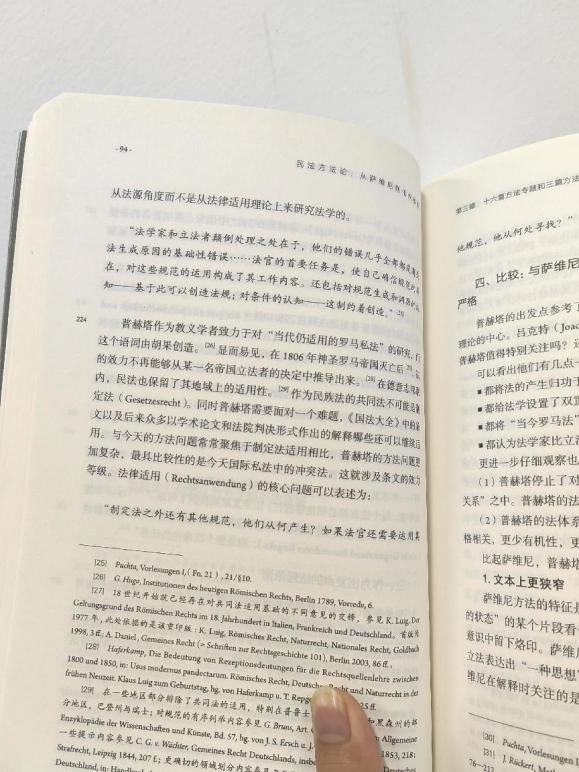 可能許多人在聽到“方法論”一詞時(shí),會(huì)認(rèn)為是很抽象的、純粹理論的探究,與具體的法律實(shí)踐、社會(huì)生活相距甚遠(yuǎn)。但其實(shí)不然。書中介紹了不同的理論和觀點(diǎn),無論哪種學(xué)說,都不是憑空出現(xiàn)的,而是離不開當(dāng)時(shí)的社會(huì)環(huán)境,離不開那些方法論大家的生活經(jīng)歷和求學(xué)經(jīng)歷。例如,薩維尼生活的時(shí)代是德國(guó)歷史上的普魯士時(shí)期,神圣羅馬帝國(guó)滅亡時(shí),他已經(jīng)開始任教,羅馬法是他的主要研究對(duì)象,他將羅馬法強(qiáng)調(diào)為民法的典范。到了拉倫茨的時(shí)代,他經(jīng)歷過第二次世界大戰(zhàn),更強(qiáng)調(diào)法是民族共同存在的內(nèi)在精神組織和態(tài)度,維護(hù)集體秩序。