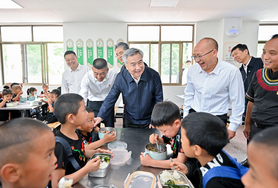 5月29日至6月1日,中共中央政治局常委、中央紀(jì)委書記李希到四川調(diào)研。這是5月30日,李希在樂山市馬邊彝族自治縣小谷溪村學(xué)??疾?。新華社記者 岳月偉 攝