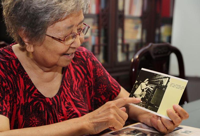 黃寶妹在家中翻看自己做紡織女工時(shí)的老照片。新華社記者 劉穎 攝