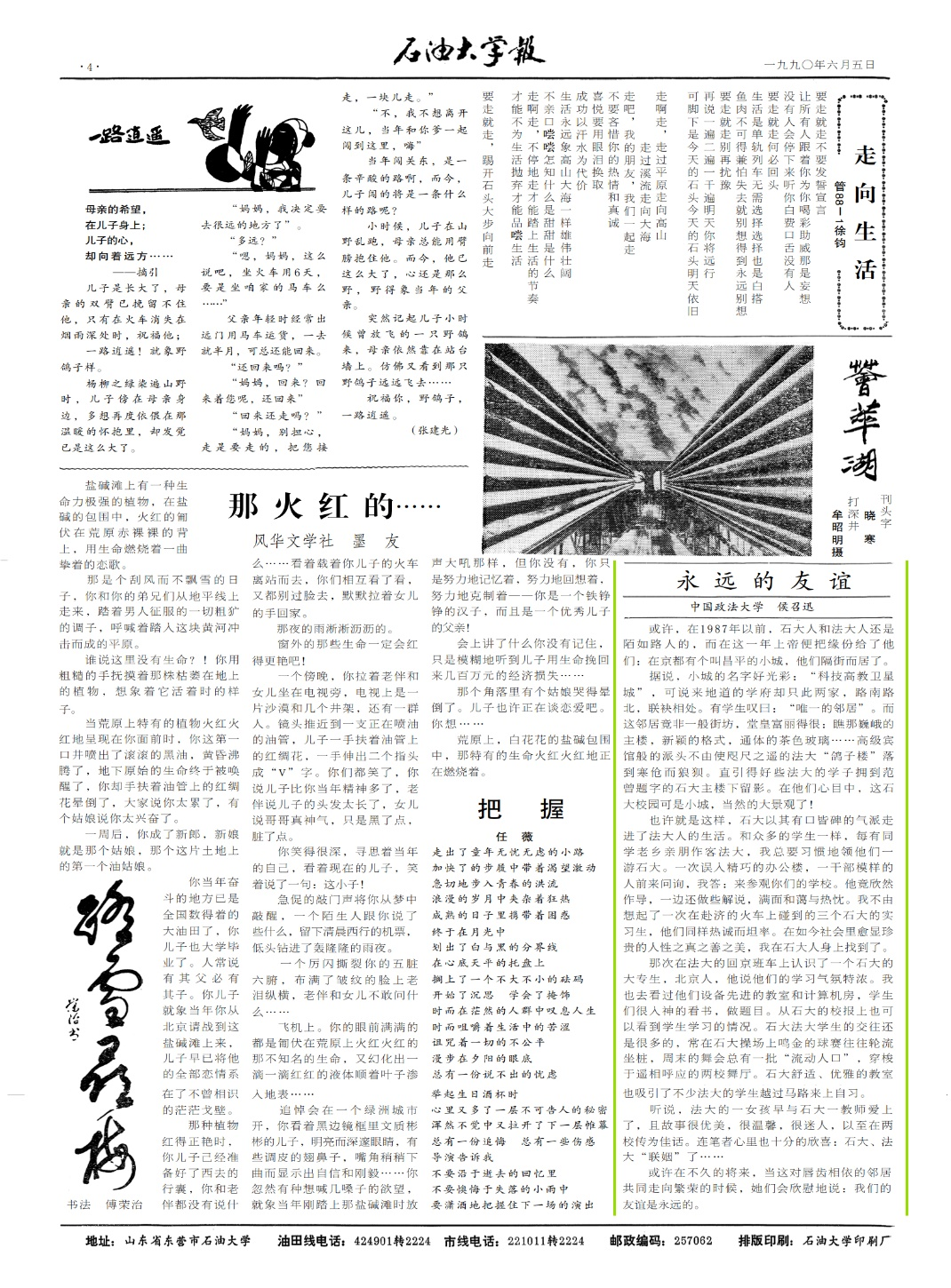 就是在查詢有些舊文作搶救式備份時(shí),偶然發(fā)現(xiàn)了上學(xué)期間在石油大學(xué)校報(bào)刊發(fā)的一篇小文章《永遠(yuǎn)的友誼》,此文早已隱入塵煙,忽然看到,也算驚喜。小文稚嫩卻不失真誠,真誠勝于技巧,真誠是道,是態(tài)度,是情懷,是出發(fā)點(diǎn)。真了必有誠,不真必?zé)o誠,真太難,誠更難。有真有誠,事有何難,世有何難。求真求誠,任重道遠(yuǎn),時(shí)不我待,我輩有責(zé)。