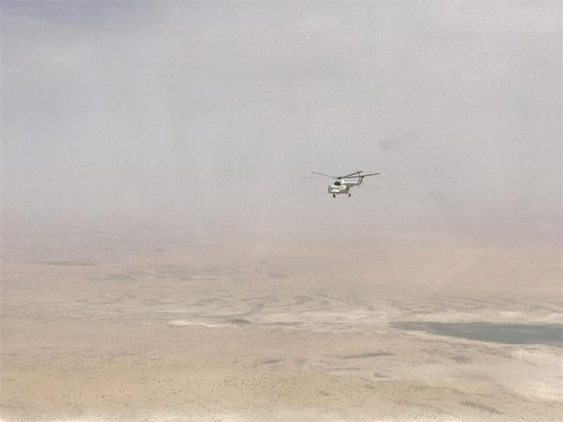 2017年8月8日,中國首支維和直升機(jī)分隊(duì)直升機(jī)飛行在蘇丹達(dá)爾富爾任務(wù)區(qū)上空。