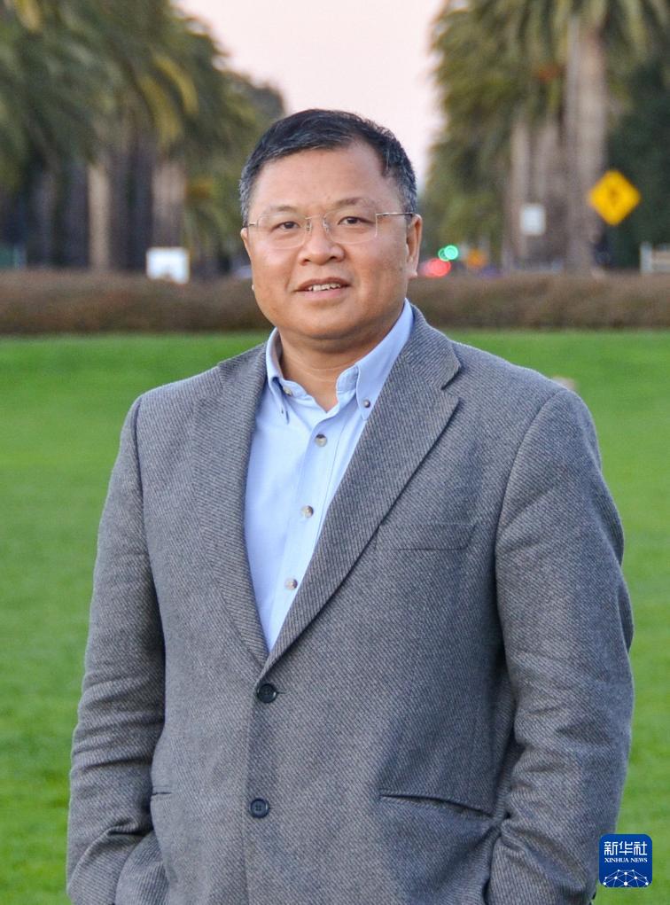 黃大年在美國斯坦福大學(xué)參加學(xué)術(shù)交流會時的照片(2011年12月5日攝)。 新華社發(fā)