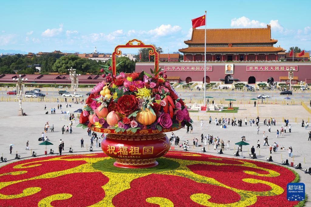 9月25日拍攝的天安門(mén)廣場(chǎng)“祝福祖國(guó)”巨型花籃。