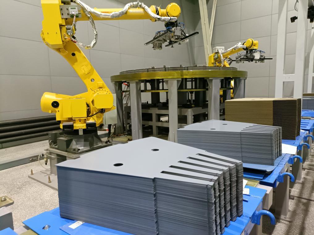 在哈電集團哈爾濱電機廠有限責任公司冷作分廠,藍色的弧光在焊花飛濺中“狂舞”,冰冷與熾熱交織在一起,自動焊接機器人在巨大的廠房內(nèi)“忙碌”……