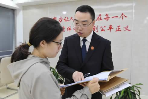 圖為10月17日,北京市第一中級人民法院執(zhí)行一庭法官孫鋒(右)在訴服大廳向執(zhí)行案件當事人解答疑問。耿冬 攝