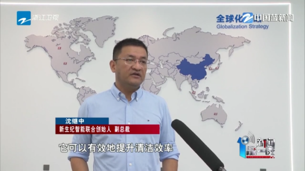 新生紀(jì)智能聯(lián)合創(chuàng)始人、副總裁 沈繼中:擁有非常強大的AI系統(tǒng),相對于傳統(tǒng)的清潔機器人,它可以有效地提升清潔效率,大概能夠提升10倍左右。