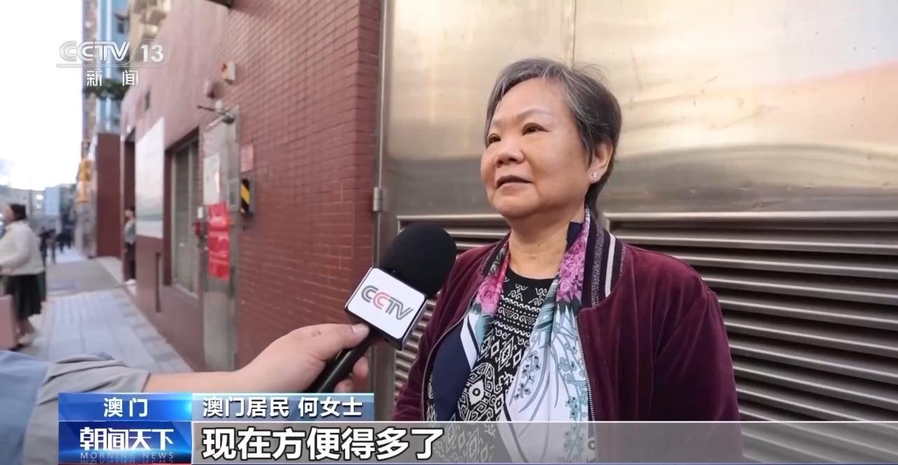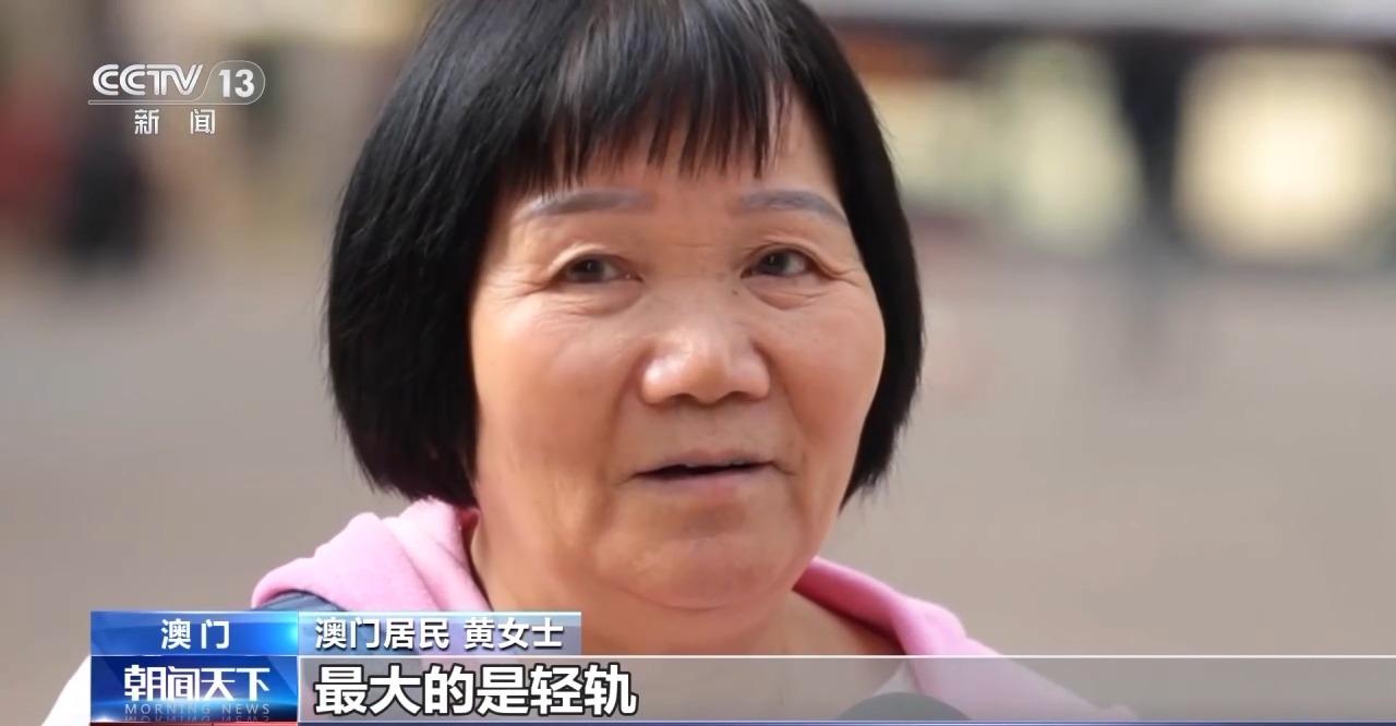 澳門居民 黃女士:最大的變化是輕軌?,F(xiàn)在交通很方便,變化都很大,開通了地鐵石排灣線,到橫琴口岸十幾分鐘就到關(guān)閘了。