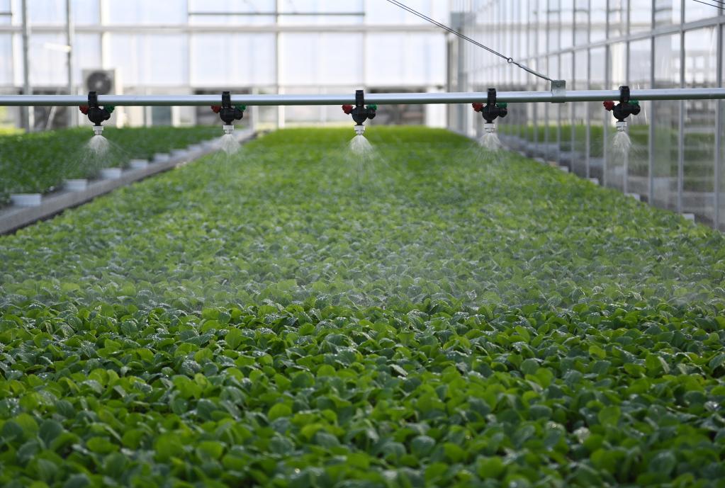 12月2日,在謝徑安·傳化農(nóng)創(chuàng)村植物科學(xué)中心里,自動噴灌系統(tǒng)在數(shù)字種苗工廠內(nèi)灌溉育苗。新華社記者 盧哲 攝