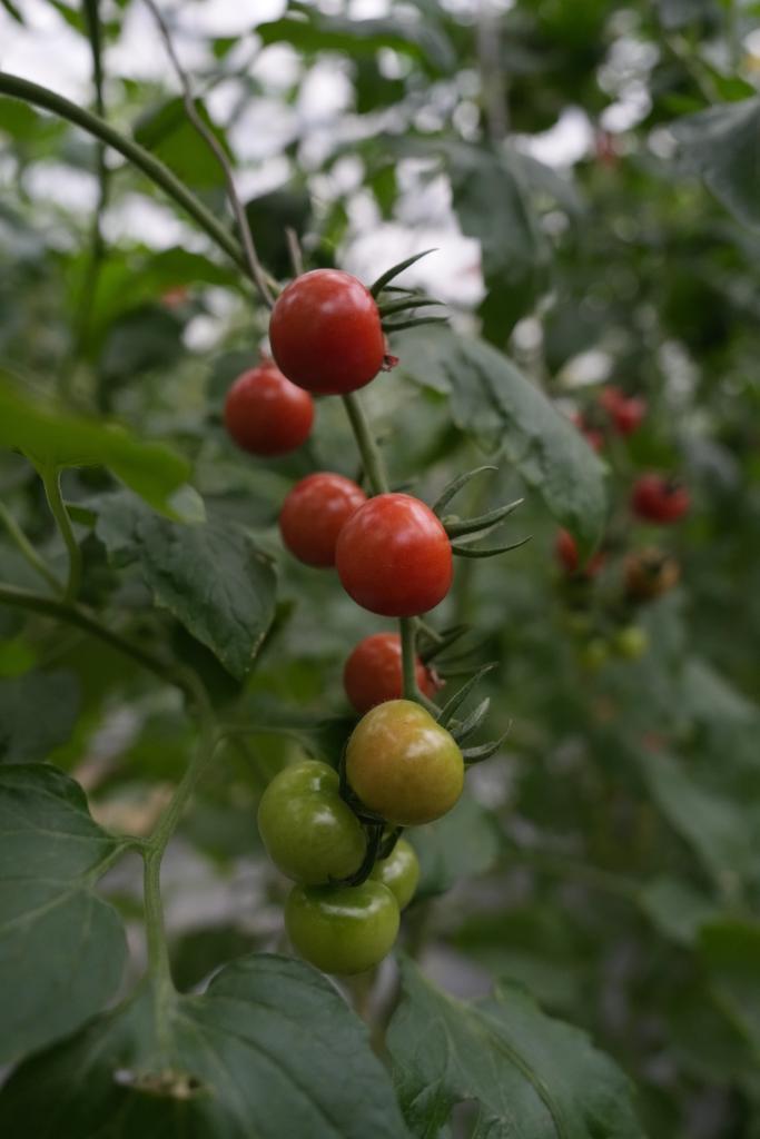 灣底村智能化玻璃溫室里的七彩番茄可供游客體驗采摘。新華社記者周佳誼 攝