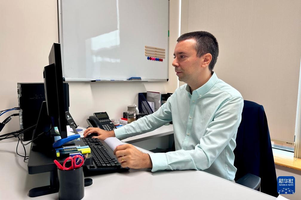 2024年11月21日,澳門城市大學(xué)葡語國家研究院的助理教授、來自葡萄牙的若昂·西蒙斯(中文名朱奧)在辦工室工作。新華社記者 王露 攝