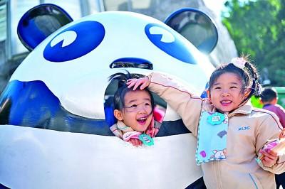 11月29日,澳門(mén)幼兒園小朋友在石排灣郊野公園大熊貓館外玩耍。 新華社發(fā)