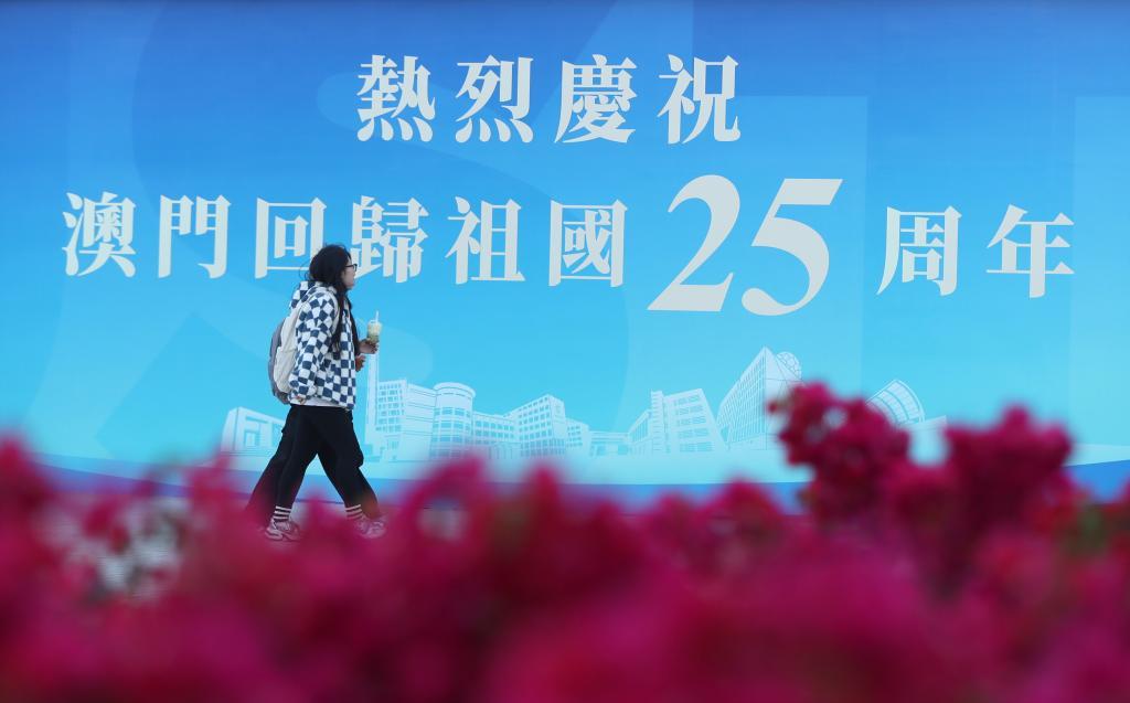 這是屬于澳門和全體中華兒女的光輝日子。25年前,中國政府恢復(fù)對澳門行使主權(quán),中華人民共和國澳門特別行政區(qū)成立,飽經(jīng)滄桑的游子終于回到祖國母親懷抱,開啟嶄新的歷史紀元。25年來,在中央和祖國內(nèi)地大力支持下,澳門特別行政區(qū)政府和社會各界接續(xù)奮斗,具有澳門特色的“一國兩制”實踐取得舉世公認的成功,憲法和澳門基本法確立的特別行政區(qū)憲制秩序牢固樹立,澳門各項事業(yè)全面進步,國際影響力顯著提升,屹立于南海之濱的澳門特別行政區(qū)更加生機勃勃,祖國的“盛世蓮花”煥發(fā)出前所未有的絢麗光彩。