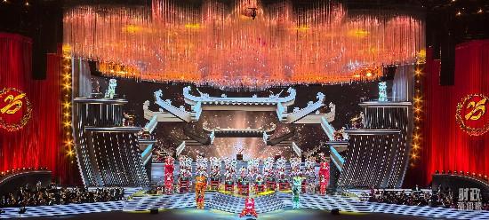 △慶祝澳門回歸祖國25周年文藝晚會現(xiàn)場燈光璀璨,歡樂喜慶。(總臺央視記者范學禹拍攝)
