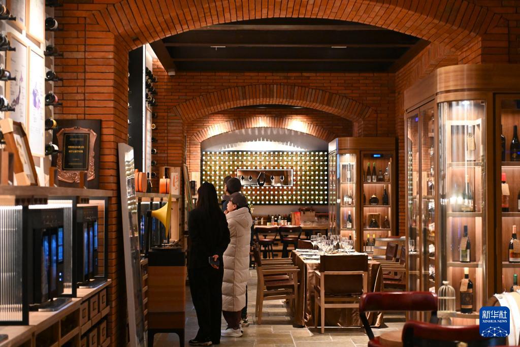 12月24日,游客在位于寧夏銀川市的圖蘭朵葡萄酒小鎮(zhèn)參觀葡萄酒廊。