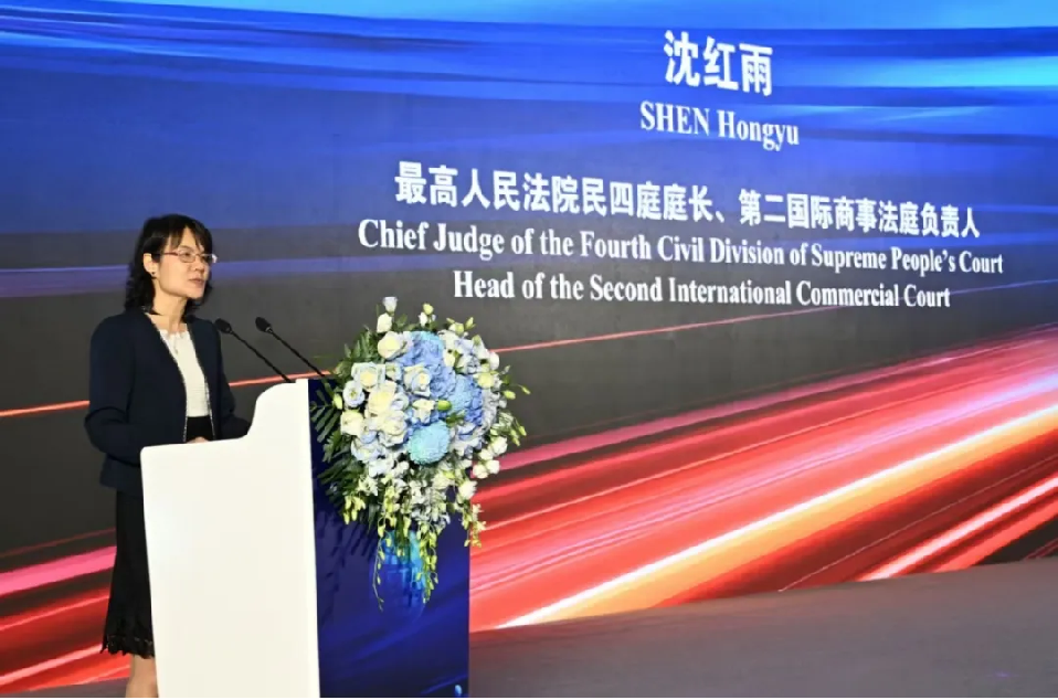 (最高人民法院民四庭庭長(zhǎng)、第二國(guó)際商事法庭負(fù)責(zé)人沈紅雨發(fā)表主旨演講)