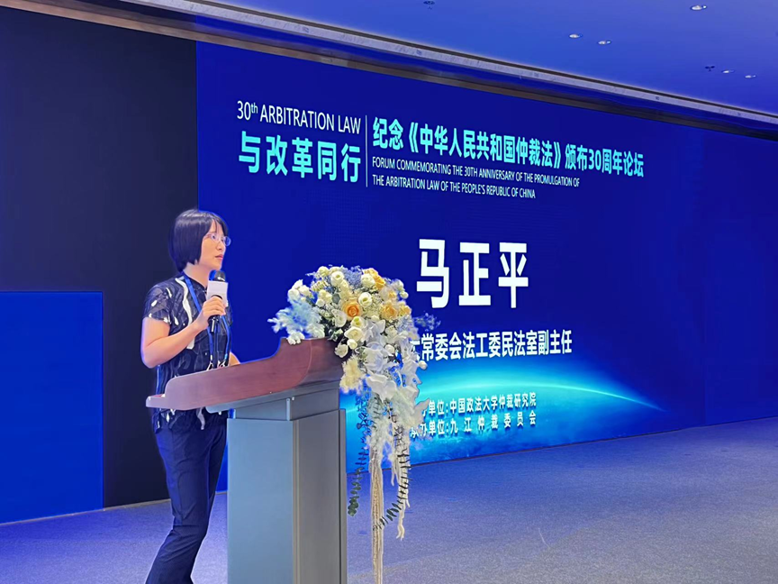 全國人大常委會法工委民法室副主任馬正平在致辭中回顧了仲裁法的發(fā)展歷程。她說,回望仲裁法的歷史,始于九十年代初,當(dāng)時的立法進(jìn)程是比較快的,全國人大常委會1994年6月份做的初審,8月份就已經(jīng)二審?fù)ㄟ^了。可以說,這部法律具有里程碑意義。很高興看到仲裁法實(shí)施30年來,極大促進(jìn)了我國仲裁事業(yè)的蓬勃發(fā)展,化解了大量的糾紛,服務(wù)了經(jīng)濟(jì)社會發(fā)展的大局。同樣具有重大意義的是,在仲裁法頒布30周年之際,仲裁法迎來新一輪大修,相信修改后的仲裁法也必將進(jìn)一步保障我國仲裁事業(yè)的發(fā)展,促進(jìn)經(jīng)濟(jì)社會的發(fā)展。