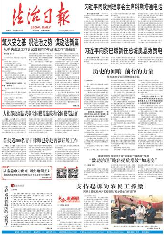“推進全面依法治國,努力建設(shè)更高水平的法治中國?!?/p>