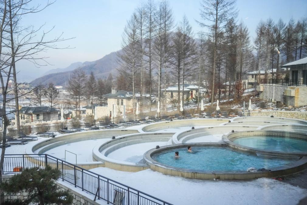 記者在溫泉小鎮(zhèn)一個室外溫泉池看到,騰騰熱氣在周身繚繞,游客發(fā)絲上凝著細碎的霜花。第一次到小鎮(zhèn)旅居過冬的德國游客沃爾夫說:“這里的溫泉水很干凈,我每天都要來泡一泡?!?/p>