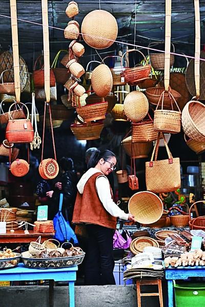 浙江蘭溪市游埠古鎮(zhèn),游客在手工制品店挑選商品。新華社發(fā)