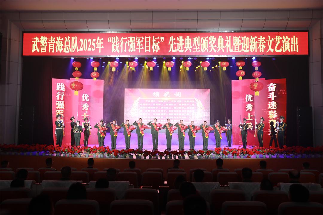 節(jié)目間隙還穿插了武警青??傟?duì)2025年“踐行強(qiáng)軍目標(biāo)”先進(jìn)典型頒獎(jiǎng)環(huán)節(jié),總隊(duì)首長(zhǎng)分別為8名警官、10名士兵和2名文職人員頒發(fā)“踐行強(qiáng)軍目標(biāo)”優(yōu)秀個(gè)人榮譽(yù)。一年來(lái),在總隊(duì)黨委的堅(jiān)強(qiáng)領(lǐng)導(dǎo)下,官兵們堅(jiān)定信心、團(tuán)結(jié)奮進(jìn)、凝心聚力、勇?lián)姑?,涌現(xiàn)出很多先進(jìn)典型和模范。