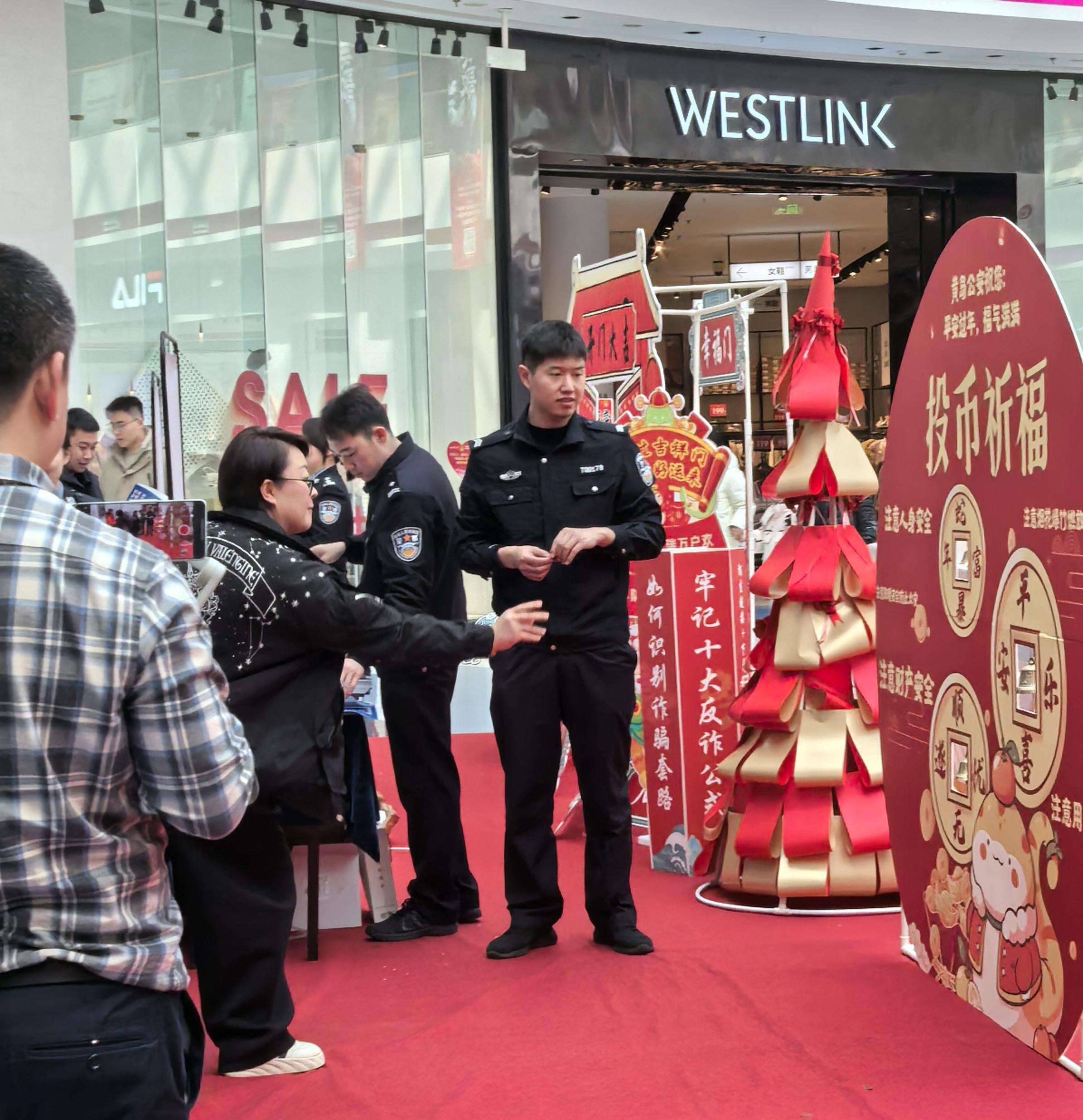 新春佳節(jié),山東省青島市黃島區(qū)某大型商場(chǎng)內(nèi)張燈結(jié)彩,人頭攢動(dòng),洋溢著濃濃的節(jié)日氛圍。在商場(chǎng)中央展廳,黃島公安組織的“法治文化過(guò)大年”宣傳活動(dòng)正如火如荼地進(jìn)行。